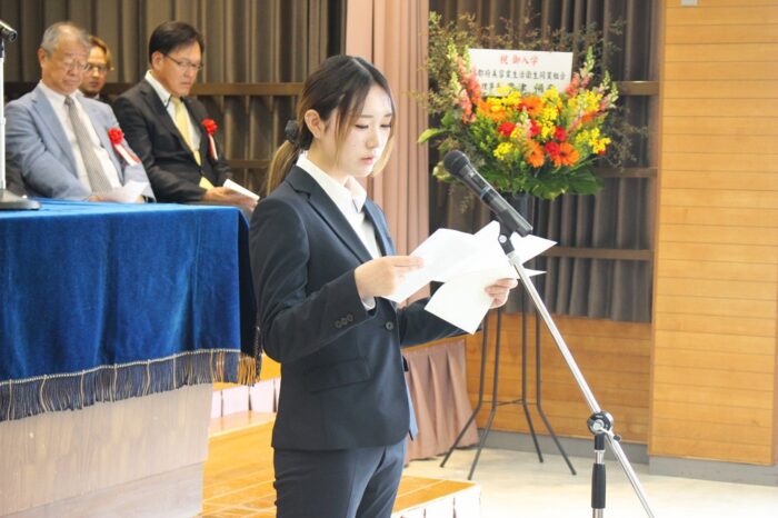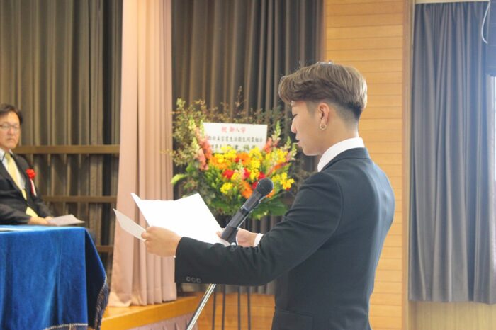 在校生代表から新入生へ歓迎の言葉が述べられました。