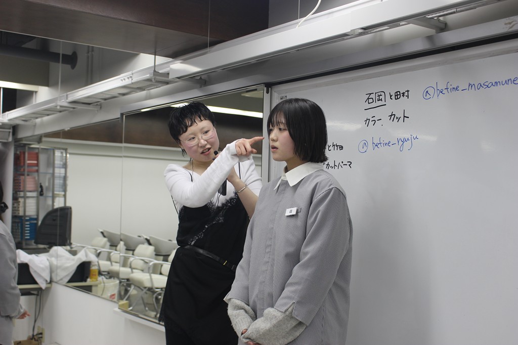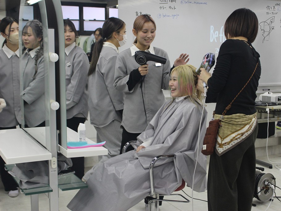 デザインカラーやヘアアレンジをしていただきました!そして、ヘアカットでは、モデルになった学生は実際、なんと30㎝カットしました!