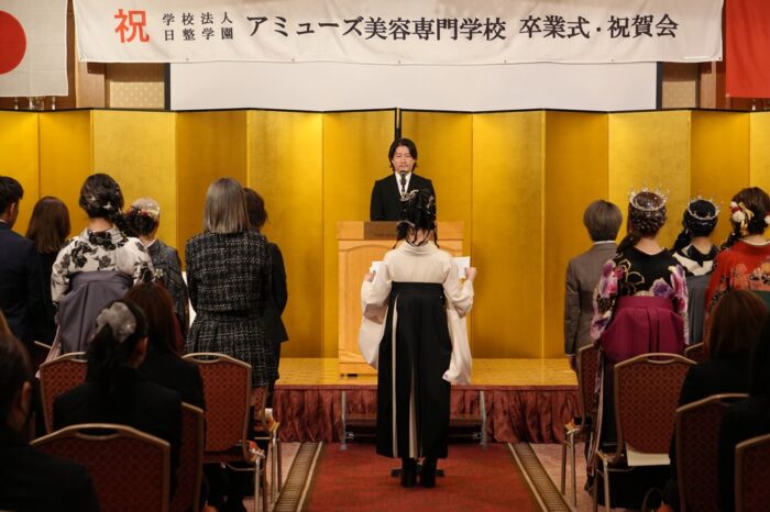 学校長の式辞、そしてご来賓の方からの祝辞を賜り、