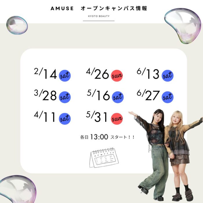 アミューズならではの美容体験&体感メニューを実施。美容を楽しく学ぶアミューズを感じてください。