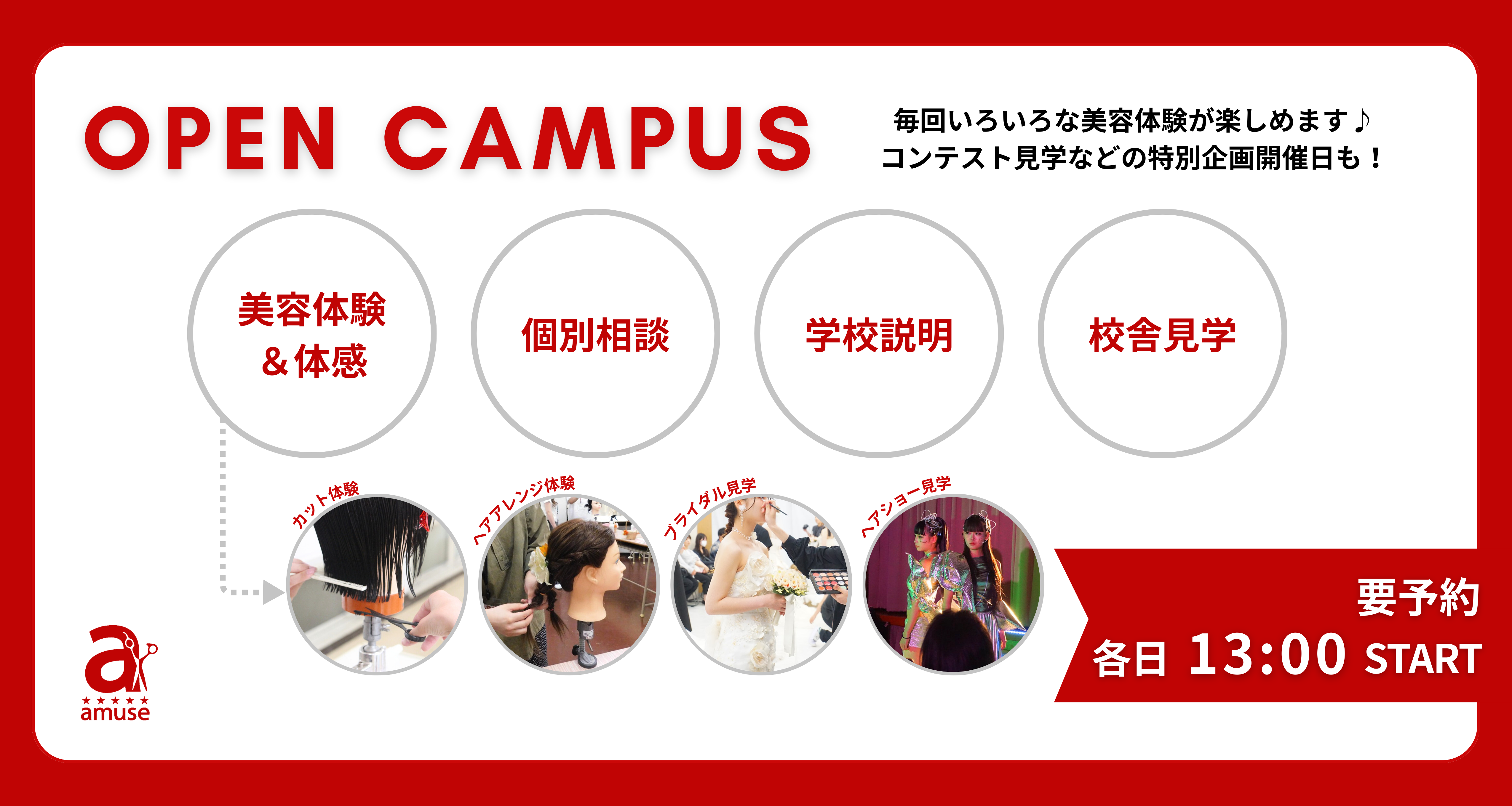 入学金が10万円免除に! 社会人の方も対象です。 ※本校規定の該当者のみ対象。アミューズ美容専門学校では、入学までの不安や疑問を解決していただけるイベントを開催しています!!